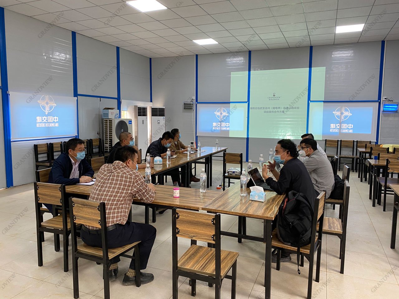2020年3月25日,廣角赴湖南省郴州市黃沙鎮中交大樓與黃書記等項目負責人就湖南省臨武至連州(湘粵界)高速公路項目推廣宣傳合作事宜展開詳細溝通并達成初步共識。