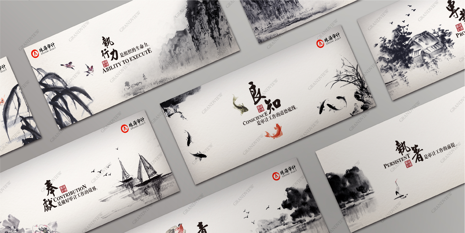 審計(jì)局平面海報(bào)水墨畫為設(shè)計(jì)靈感,立足于傳統(tǒng),傳承博大精深的中華文化,彰顯審計(jì)局穩(wěn)重、低調(diào)、大氣的形象,具有鮮明的民族特色。