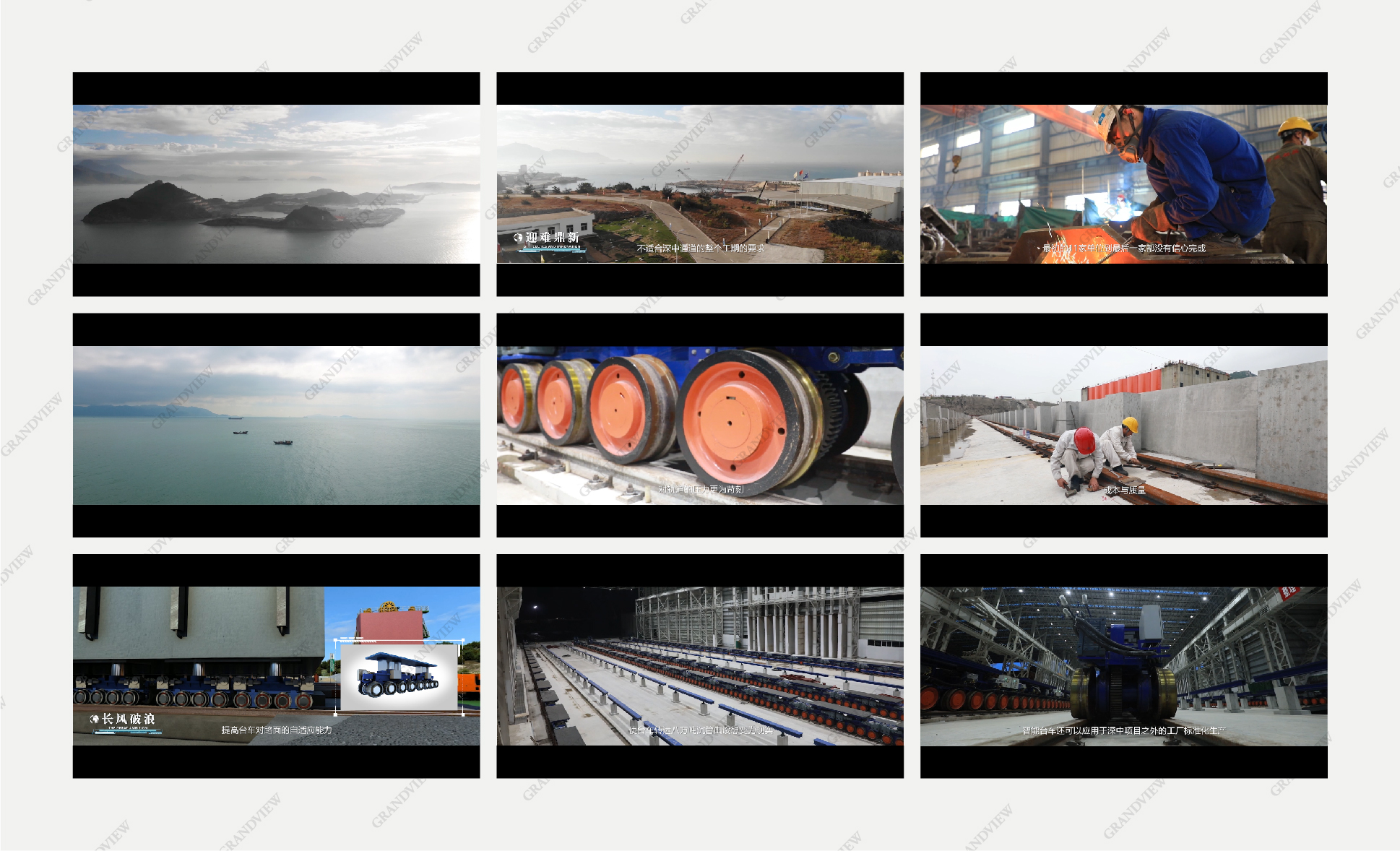“利用自動控制程序,解決200臺臺車同步自平衡、自糾偏、路面自適應等重大難題。”全片文案臺詞既能精確地敘述事件,又能表達影片主題思想,升華主題。